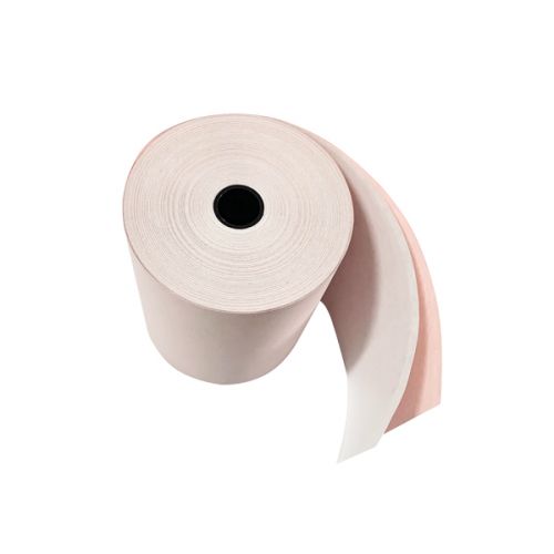 Boxed 20 Rolls per pack, 76mm White on Pink 2Ply Till rolls. These rolls are used a lot in Kitchens, Restaurants & Hotels. These Till rolls need a ribbon in the printer. The print head action produces the same print on both pieces of paper or on the third if its 3 ply roll. This paper rolls are Earth Friendly sourced from sustainably managed forests.